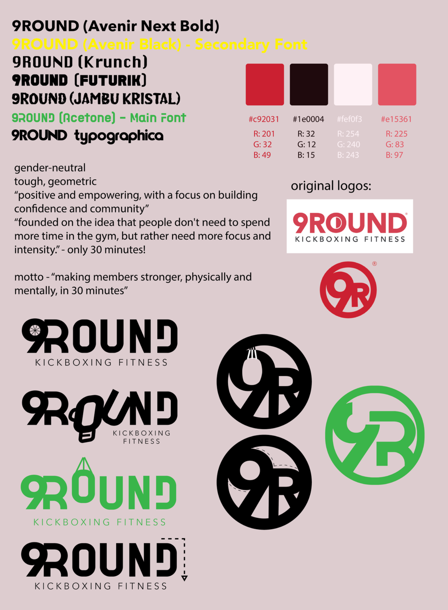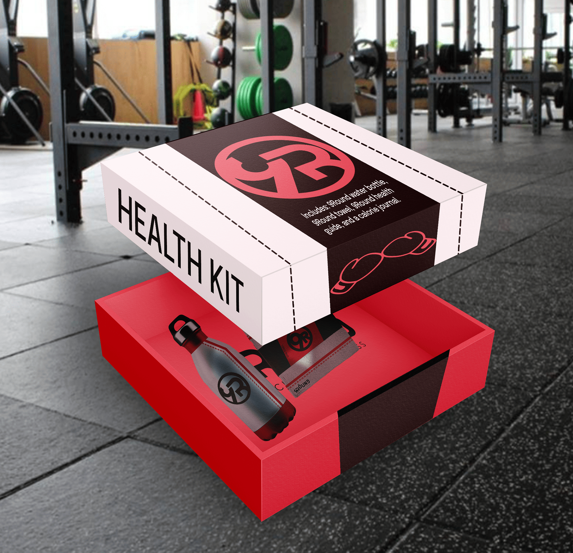 9Round is a kickboxing gym with locations throughout the country. Inspired by their brand, I redesigned their logo to make it more visually cohesive. Additionally, I created multiple mockups of different products to enhance the gym's brand. This project won silver in the 2025 Graphis New Talent competition. This was a class assignment and is in no way affiliated with the actual company.