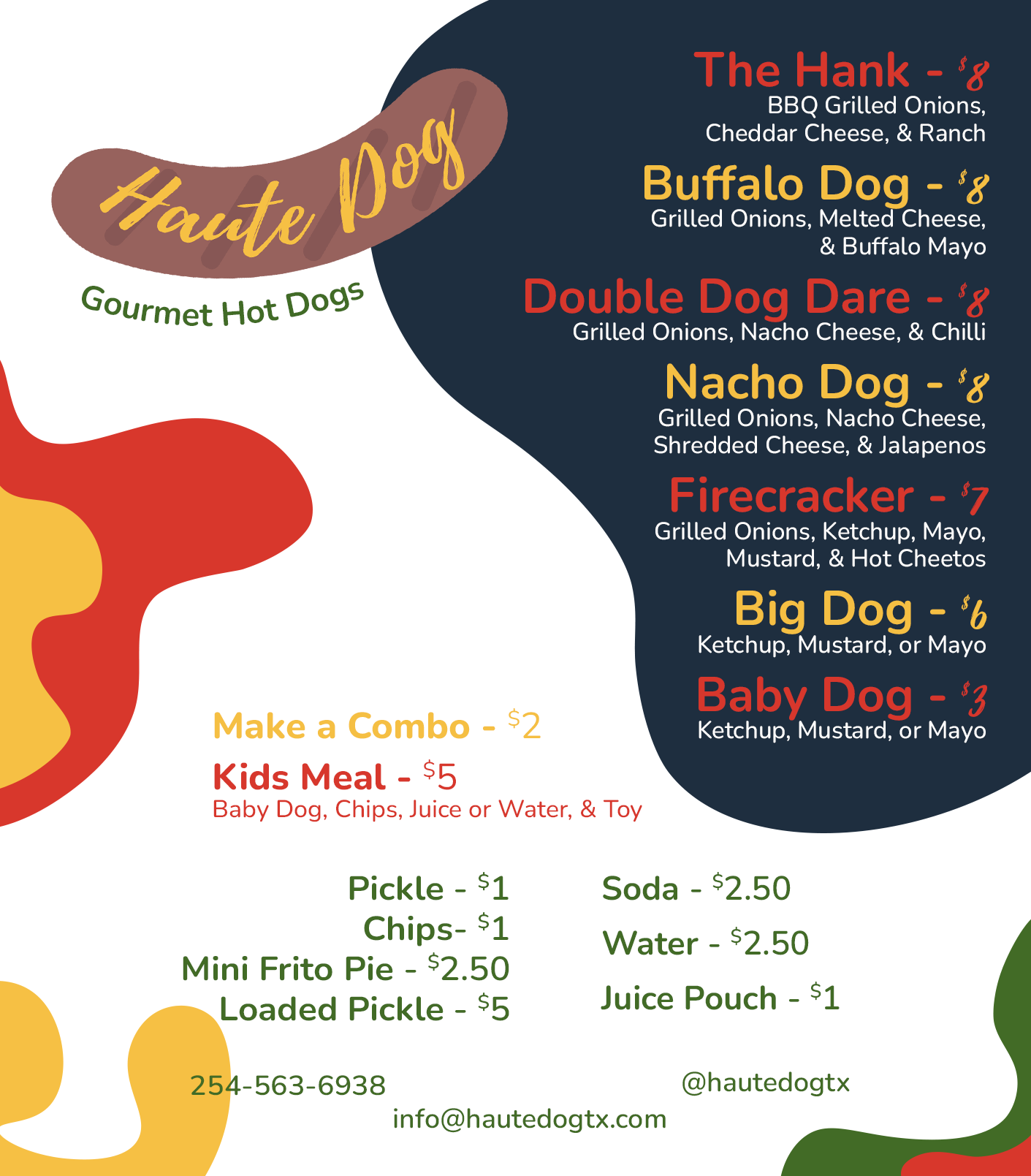 Haute Dog is a local hot dog vendor in Temple, Texas. The original branding didn't effectively convey the messaging, so I rebranded the business to be more "hot dog"- oriented. Like Brightbite and Paws n' Claws, Haute Dog was intended to have a website and app to go with it. (2025)